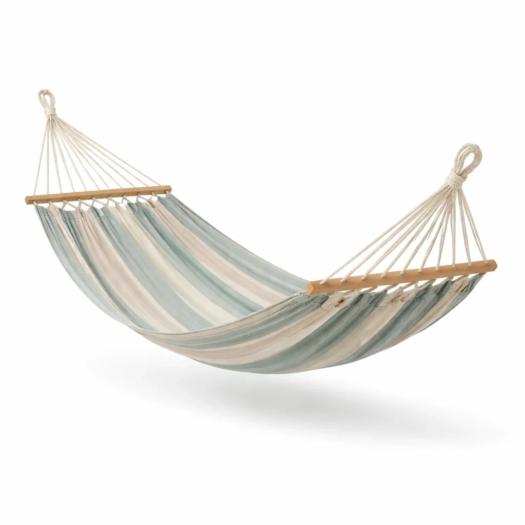 Amaca in cotone e legno a strisce verde e beige