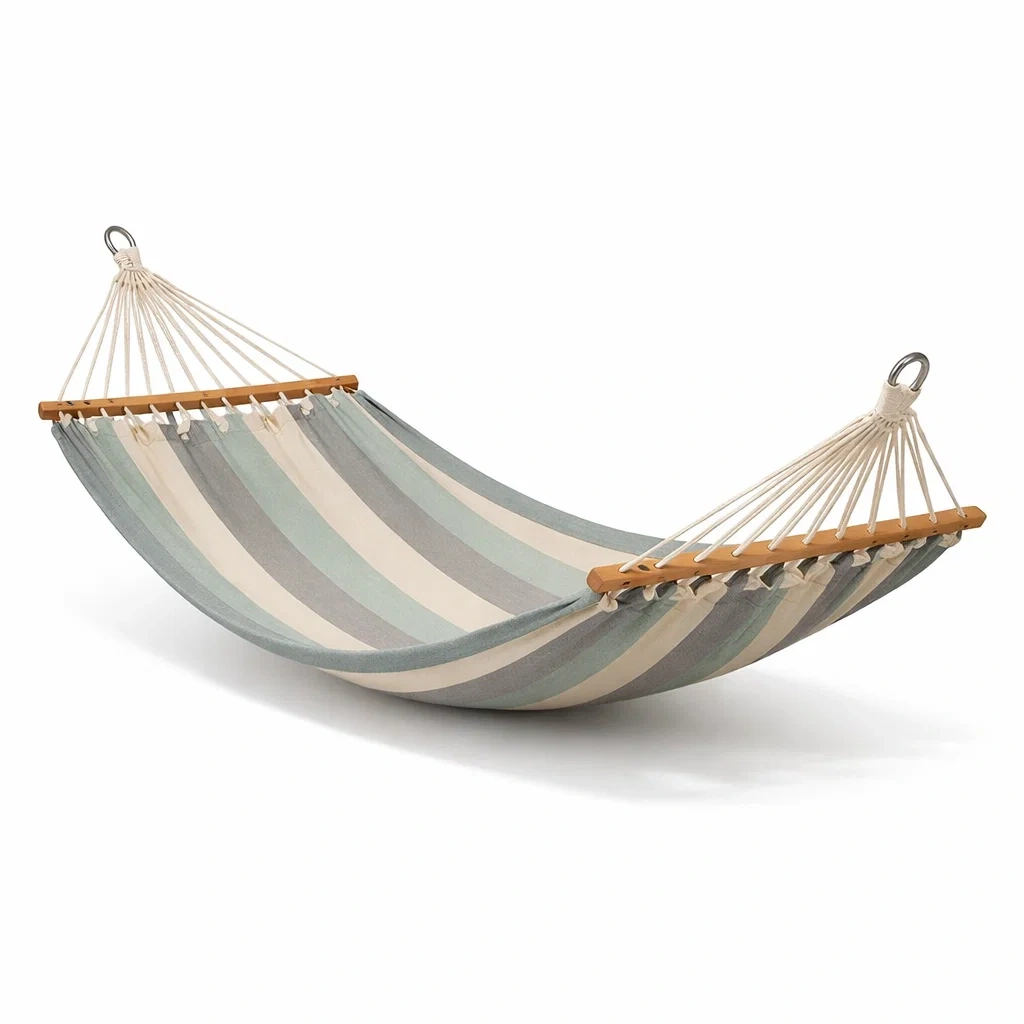 Amaca da giardino in cotone a righe blu grigio beige