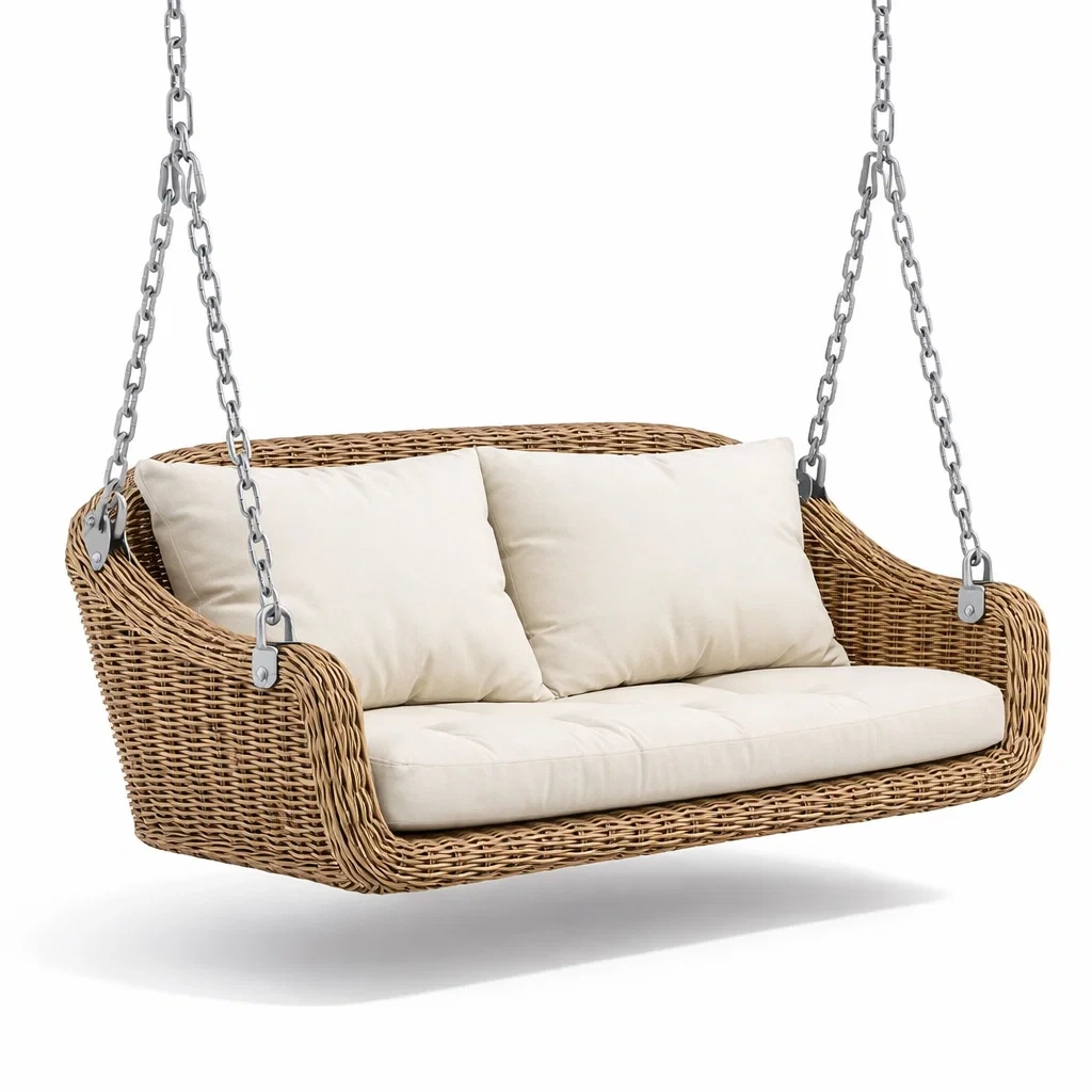 Struttura in rattan sintetico con cuscini in poliestere e imbottitura in schiuma poliuretanica.